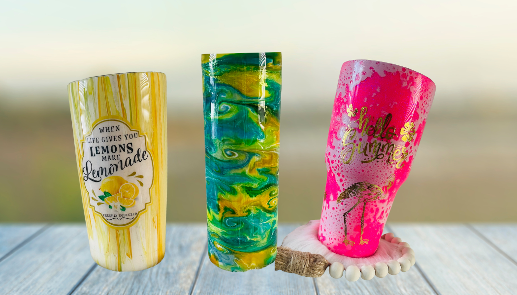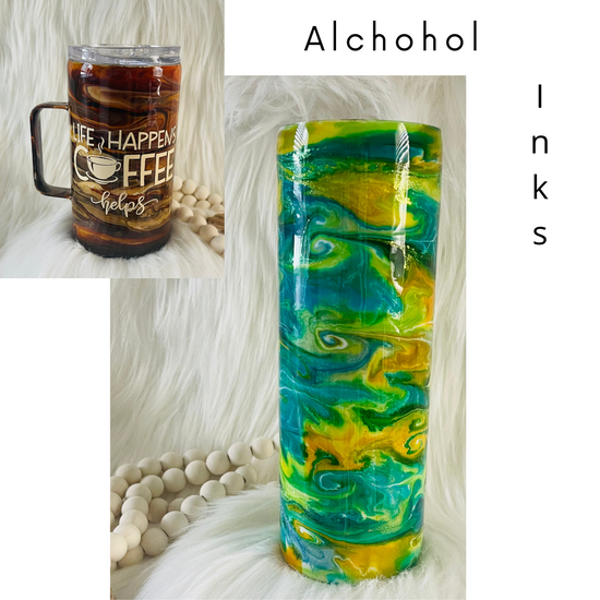 Alcohol Ink is a technic that combines several colors of ink to creates a beautiful swirl effect on your tumbler.