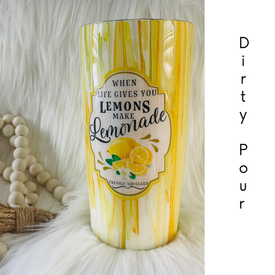 A Dirty Pour combines up to 5 different acrylic paints. Its then poured over the tumbler to create magic!